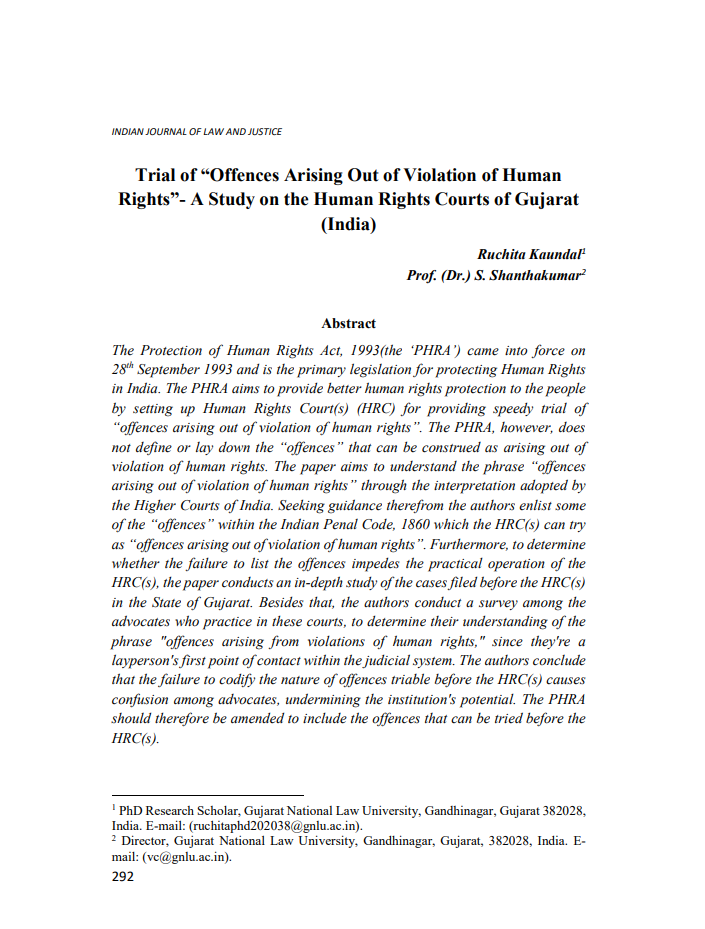 Title: | Trial of “Offences Arising Out of Violation of Human Rights” - A Study on the Human Rights Courts of Gujarat (India) |