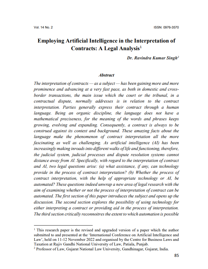 Title: | Employing Artificial Intelligence in the Interpretation of Contracts: A Legal Analysis |
