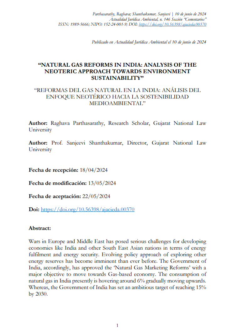 Other Titles: | Reformas del gas natural en la India: análisis del enfoque neotérico hacia la sostenibilidad medioambiental |