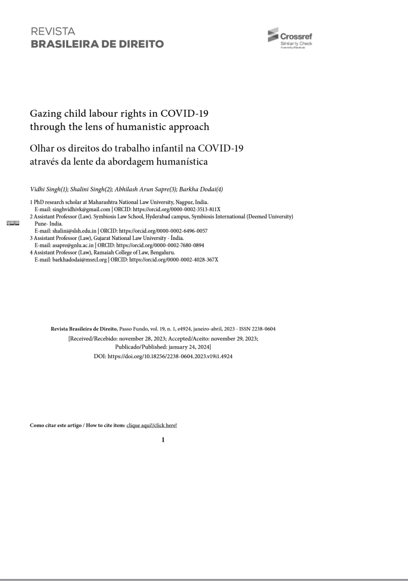 Citation: | Singh, V., Singh, S., Sapre, A. A., & Dodai, B. (2023). Olhar os direitos do trabalho infantil na COVID-19 através da lente da abordagem humanística. Revista Brasileira de Direito, 19(1), 4924. |